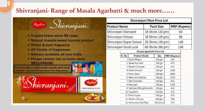 • तसेच इतर अनेक सुगंधी उत्पादने