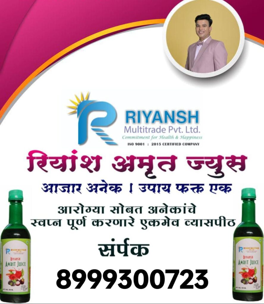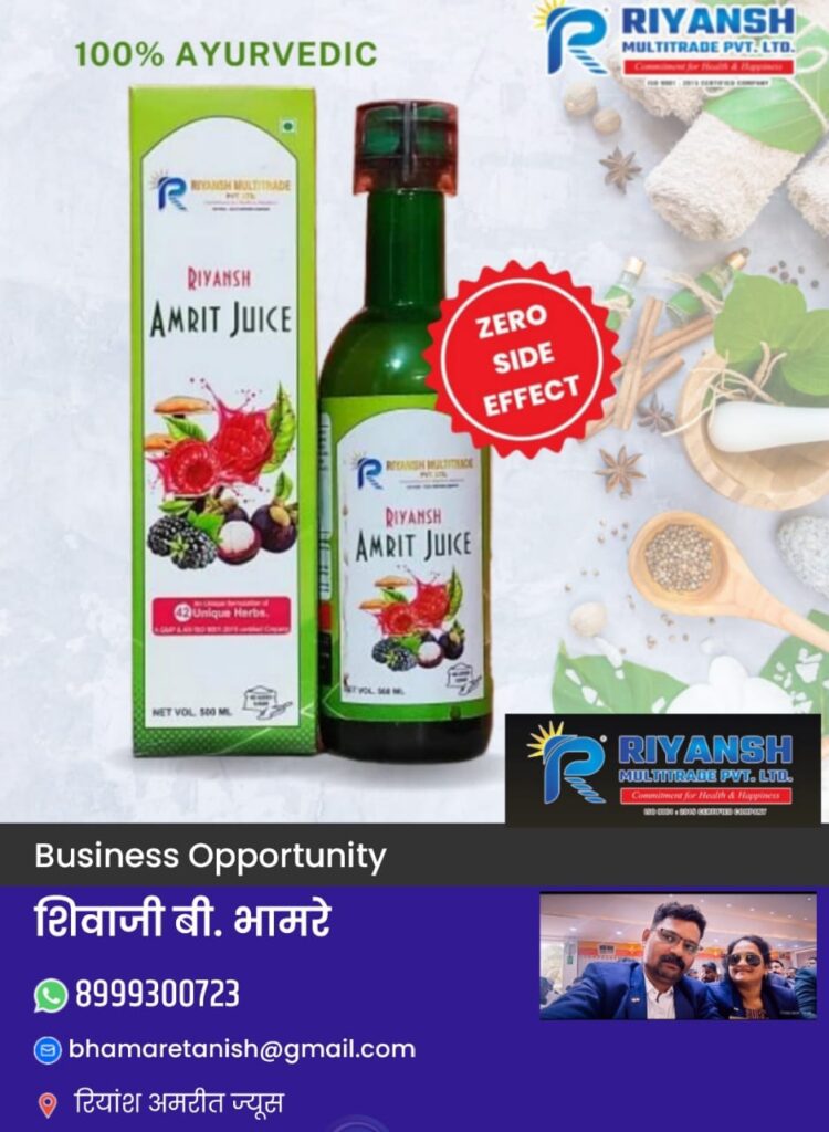 ☀️🌱 आयुर्वेदाच्या शुद्धतेने समृद्ध आणि अनेक रोगांवर परिणामकारक, आयुर्वेदिक रियांश अमृत ज्यूस – भारतातील लाखो लोकांचा विश्वास असलेले नंबर-1 उत्पादन आता तुमच्यासाठी ☀️🌱 रियांश मल्टीट्रेड प्रायव्हेट लिमिटेड, पुणे